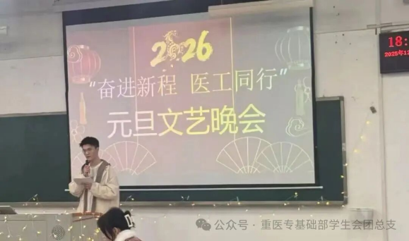 2025年12月28日晚,我院“奋进新程,医工同行”2026年元旦文艺活动在教室举办,学院教师与学生齐聚一堂,共庆元旦佳节。